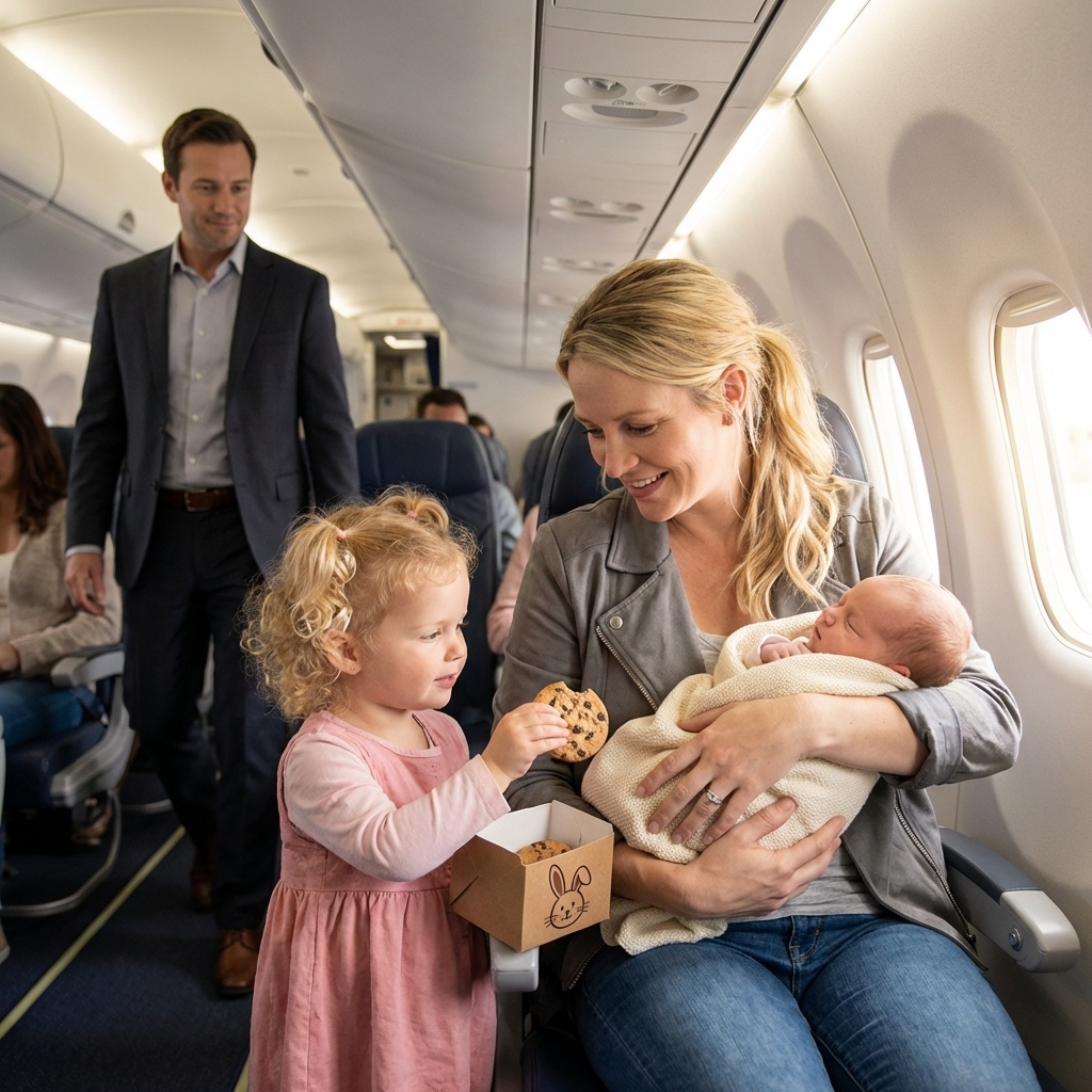 “Si comparto mi galleta, ¿te quedas?” —le preguntó la hija del director ejecutivo a una madre soltera pobre en el avión.