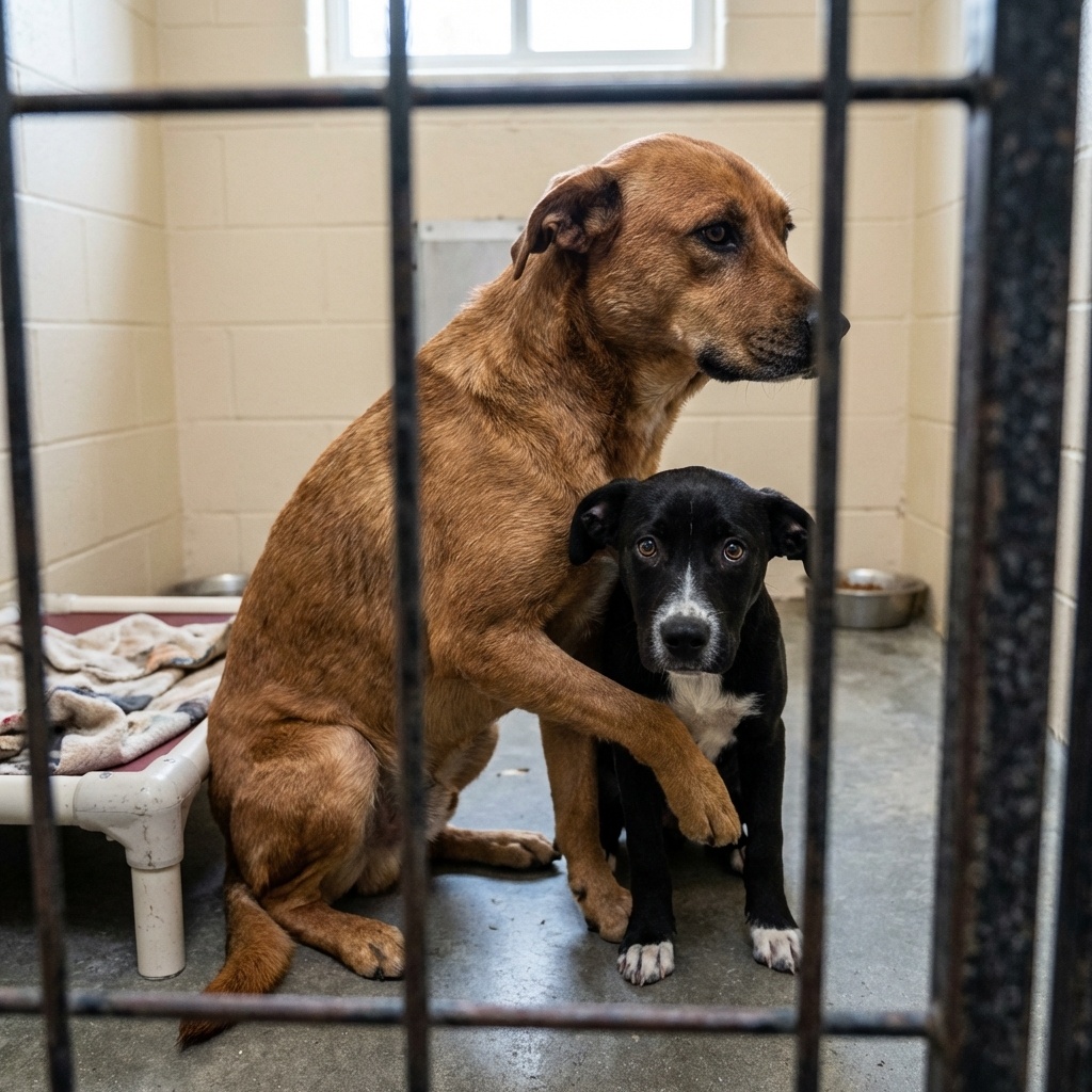 Al escuchar que los iban a sacrificar, dos perros se abrazaron y miraron orgullosos a la cámara, esperando lo mejor…