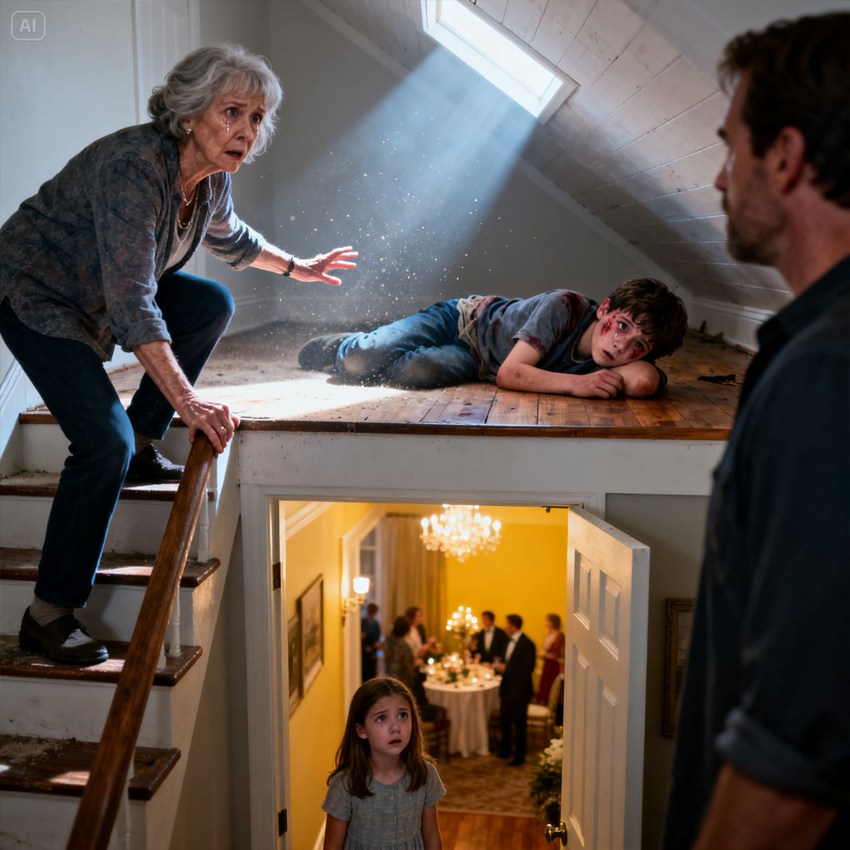 “Mi nieta de 6 años me susurró temblando en la fiesta de inauguración de la casa de mi hijo: ‘Hay alguien escondido en el ático, ve a ver’. Cuando me asomé nerviosa, allí estaba mi nieto desaparecido, herido y tirado en el suelo. ‘Abuela… mamá y papá…’. Esas palabras me helaron la sangre”.