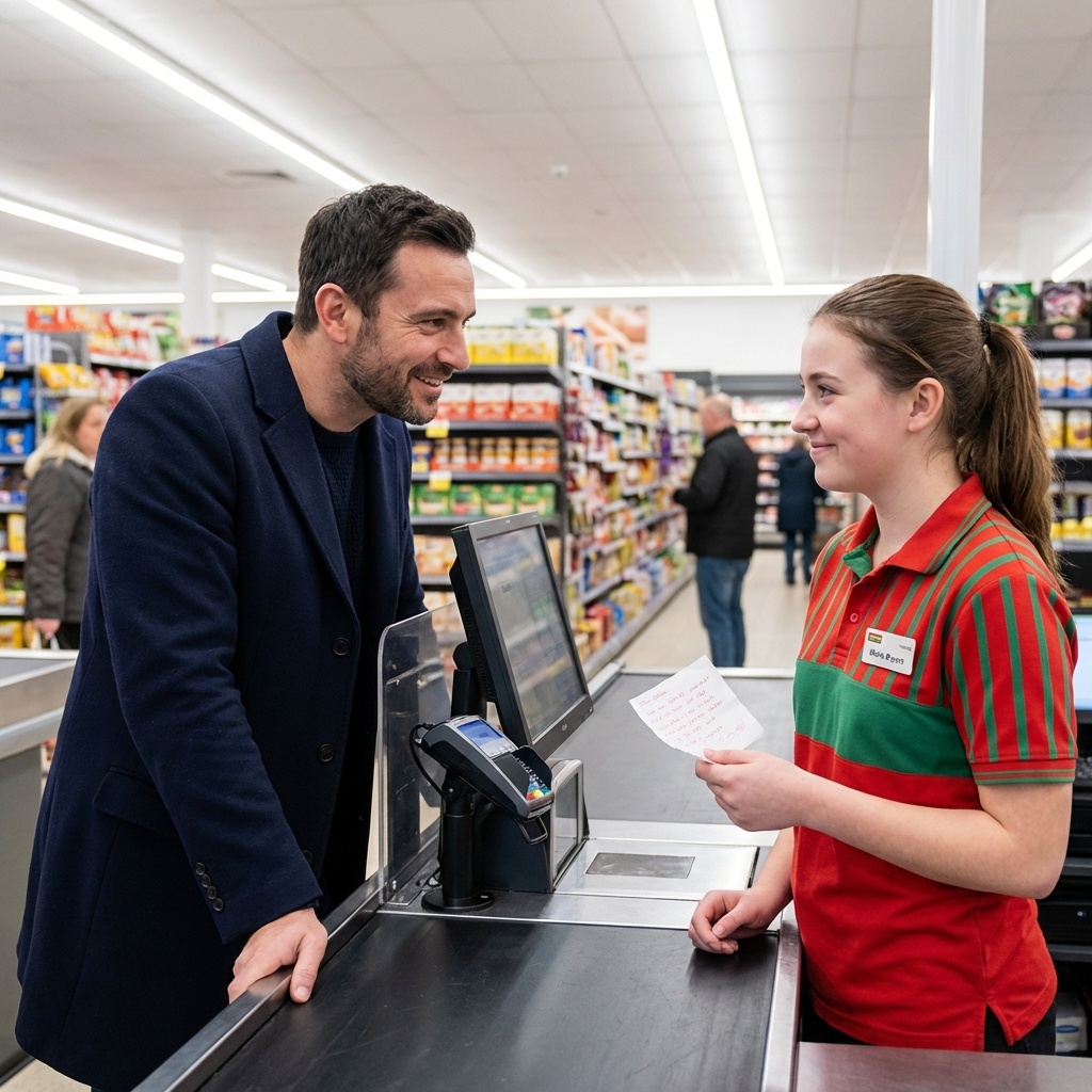 CAJERA DE SUPERMERCADO LE DIO SU NÚMERO A UN DESCONOCIDO… SIN SABER QUE ERA UN MILLONARIO VIUDO.
