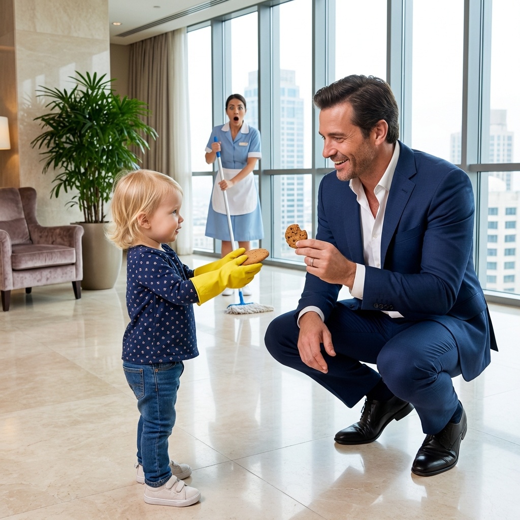 Nadie se atrevía a hablarle al Millonario… hasta que la hija de la limpiadora le ofreció una galleta