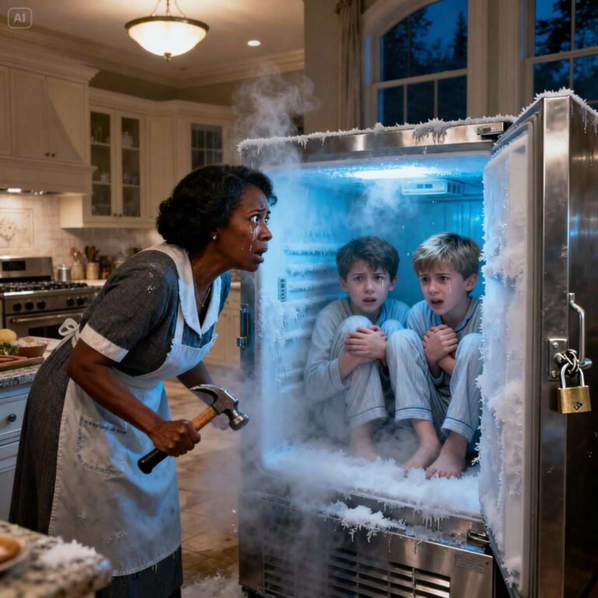 La novia del millonario encerró a dos niños en un congelador… pero la revelación de la empleada doméstica negra puso toda la mansión patas arriba.