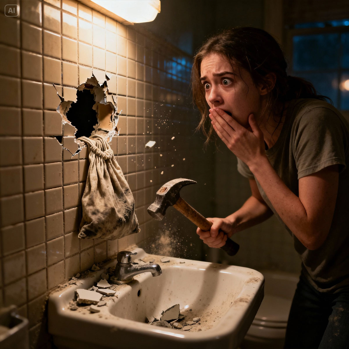 “Mientras mi esposo no estaba en casa, mi suegro me dijo que tomara un martillo y rompiera el azulejo detrás del inodoro: detrás del azulejo vi un agujero, y en ese agujero, había algo horroroso escondido.”