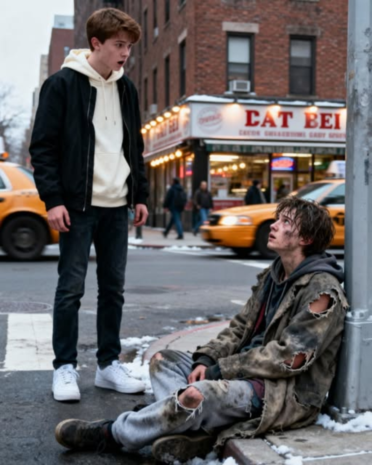 Un adolescente rico se quedó helado al ver a un indigente con su mismo rostro.