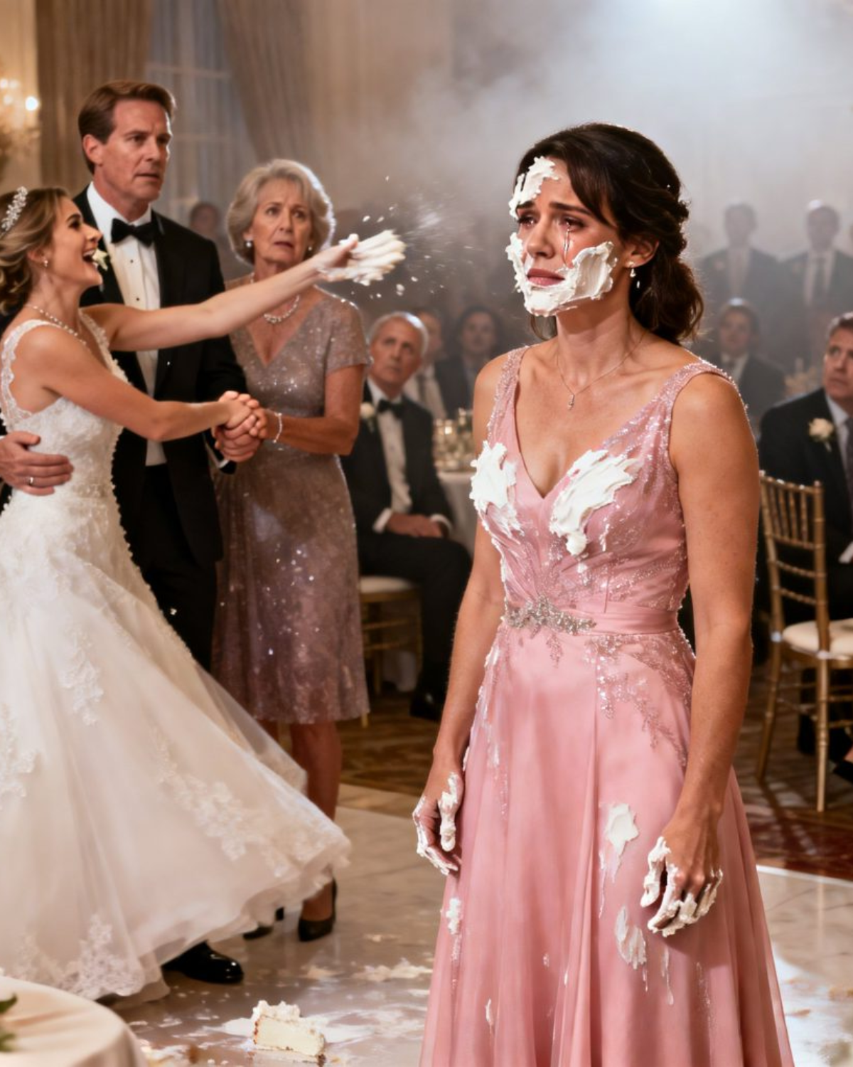 Mi hermana me lanzó el pastel de bodas y gritó: «¡Yo solo invité a la familia! ¡Tú no estabas invitada!». Mis padres estallaron en carcajadas y toda la sala rompió a reír. Aguantándome las lágrimas, me fui del lugar. Pero unas horas después, cuando regresé, tenían la cara desencajada.